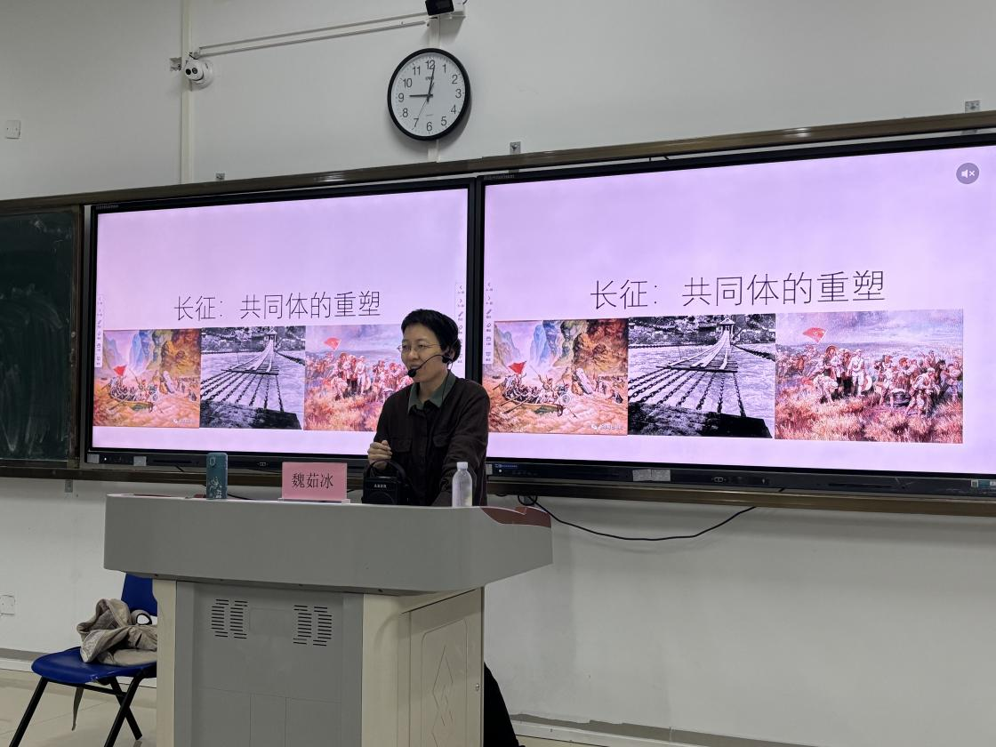 4月13日上午,马克思主义学院魏茹冰老师以“长征:共同体的重塑”为题,深刻讲述了毛泽东、朱德等老一辈无产阶级革命家在长征路上以坚定信仰和卓越智慧引领红军走出绝境的英雄事迹。强调了我们应当从从长征精神中汲取信仰力量,勇担时代责任,锻造团结奋进的青年力量。