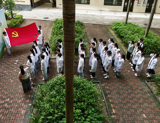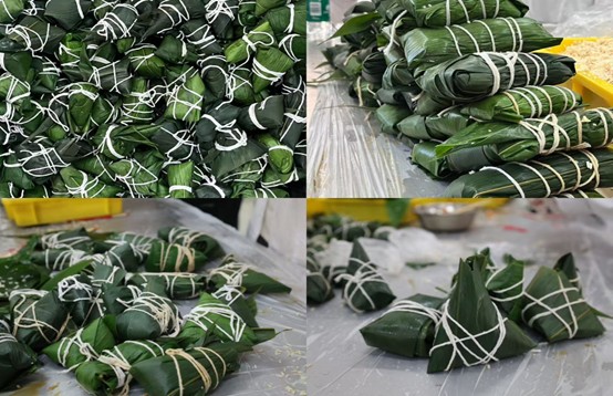 活动伊始,全体参与师生党员面向党旗庄严宣誓,重温入党誓词。铿锵有力的誓言回荡在活动现场,彰显了党员们对党的忠诚与信仰的坚定。在实践环节,大家分组协作,将糯米、粽叶、猪肉等食材化作一个个“初心粽”。从卷粽叶、填糯米到系棉线,每一道工序都承载着对传承传统文化的敬意。活动中还设置了“端午知识有奖问答”环节,围绕党史知识、端午习俗等内容设计题目,师生踊跃抢答,现场气氛热烈。活动尾声,师生党员将亲手制作的1000余个粽子分发给全院师生。部分党员还将粽子送到同学宿舍,与大家共品粽香、共话成长。