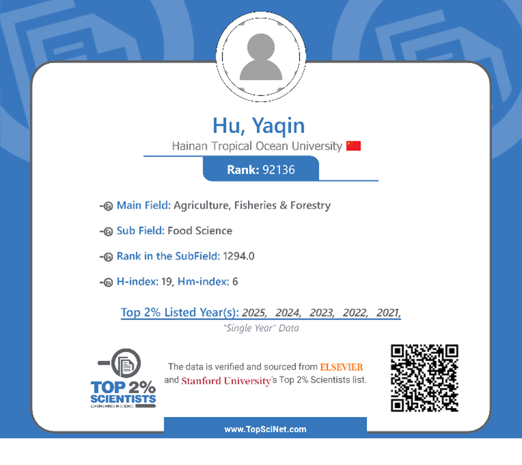 根据最新榜单数据,胡亚芹教授在“农业、渔业与林业”主领域全球排名位列前列,在其所属的“食品科学”领域内排名持续保持高位。其H指数为19,这标志着其科研成果具有较高的学术价值和影响力。