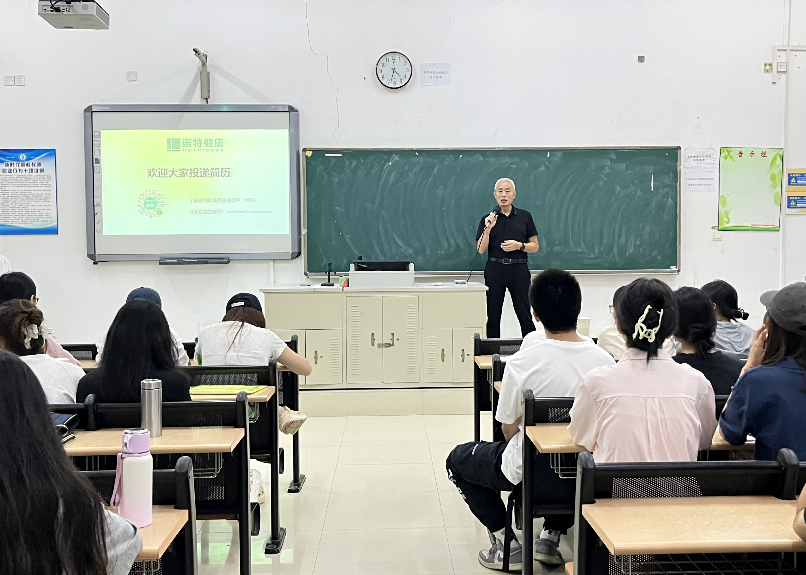 2025年9月29日,德赢官网联合浙江诺特健康科技股份有限公司海口分公司于3栋104教室,举办2026届毕业生专场就业宣讲会。此次活动旨在搭建校企沟通桥梁,助力毕业生精准对接行业需求,拓展就业渠道。食品学院副院长张铁涛、企业代表及60余名食品科学与工程、食品质量与安全以及生物与医药等相关专业的应届毕业生(含本科生/研究生)参与本次活动。
